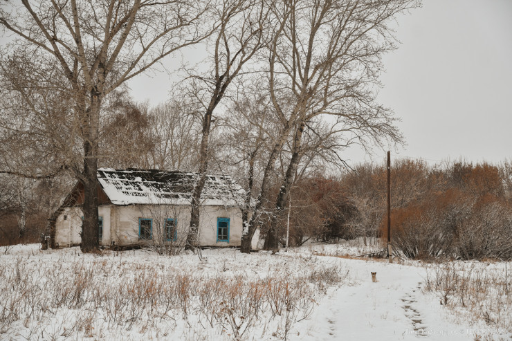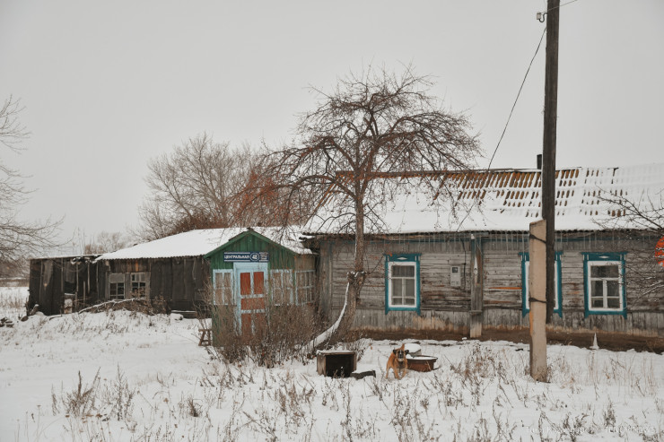 Проезжая дальше по поселку, замечаем одноэтажное здание с заколоченными дверьми и окнами. Как мы позже узнаем, когда-то в нем обучались школьники.