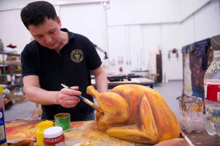 И пока постановщики работают над содержанием оперы, все производственные цеха театра трудятся над оформлением спектакля. Руководитель художественно-производственного комплекса Виктор Караре отметил, что трудоемкий процесс подготовки занял около полугода.