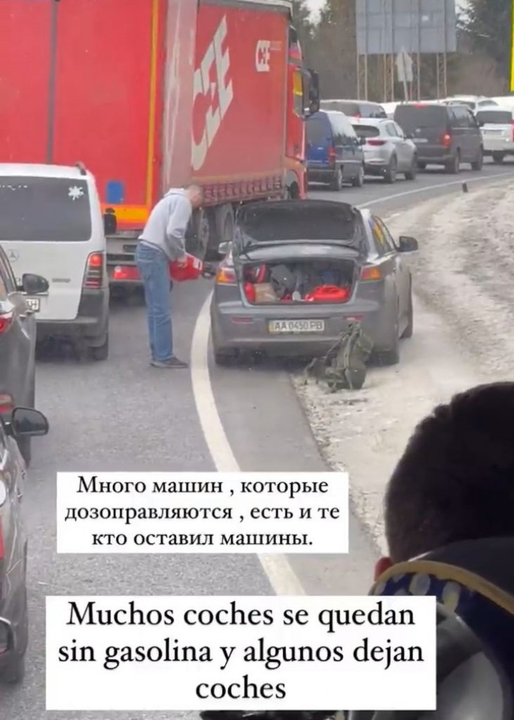 "Когда происходили взрывы, сразу звучали сирены и магазины закрывались, и, соответственно, мы не могли ничего купить. После двух дней в дороге нам удалось купить продукты, воду. За чаем, кстати, была большая очередь, так как все хотели согреться. В одном магазине мы не успели взять горячий чай. Но нам повезло, в соседнем владельцы нас угостили и чаем, и предложили поесть, и дали зарядить наши телефоны. Пока мы ждали своей очереди, пассажиры и другие люди в очереди рассказывали разные истории. К примеру, на границе уже пару дней стояла фура с украинским водителем, который ждал своего дня рождения. Через три дня ему должно исполниться 60 лет и тогда он сможет выехать из Украины. Мужчин от 18 до 60 лет из страны не выпускали из-за мобилизации", - сказал Шухрат.