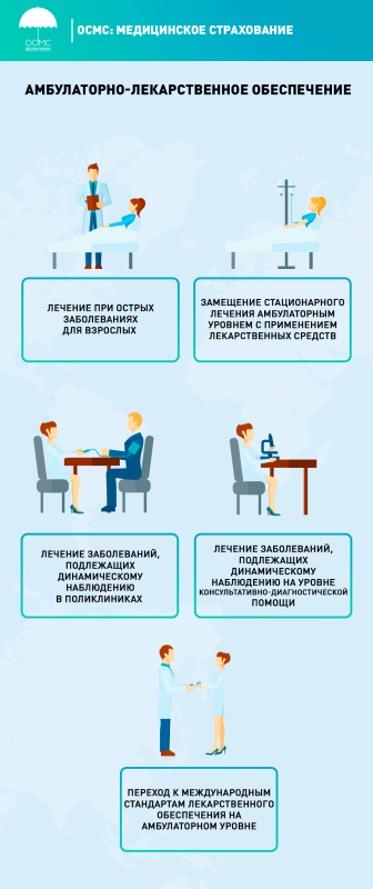 В пакет ОСМС также сверх ГОБМП будут входить дорогостоящие лабораторные услуги и обследования, расширенное амбулаторное лекарственное обеспечение, стационарозамещающая медицинская помощь, повышенный доступ к плановой госпитализации, восстановительное лечение и медицинская реабилитация.