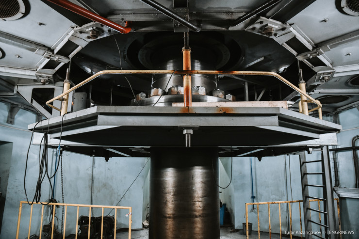 Оцените внушительные размеры одного гидроагрегата в сравнении с ростом специалиста по связям с общественностью Усть-Каменогорской ГЭС Светланы Нищенко. Напоминаем, это лишь верхушка сложного механизма.