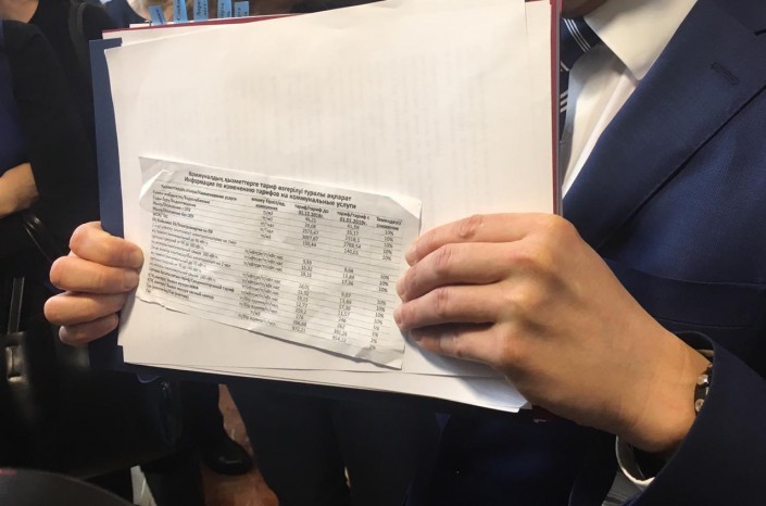 Даленов беседовал с журналистами и показывал им какую-то бумагу, говоря о коммунальных платежах.