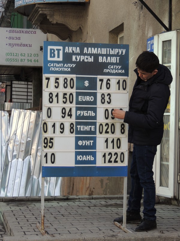 "Рубли и тенге сейчас заносят слабо по сравнению с прошлым годом. Меняют только те, кому срочно сомы нужны. Клиенты приходят, спрашивают, когда рубль и тенге подорожает. Все ждут хорошего курса. А спрогнозировать этот курс никто не может. Наша ведь экономика так сильно зависит от России и Казахстана", - делится сотрудник обменного бюро Кубанычбек Конкубаев.