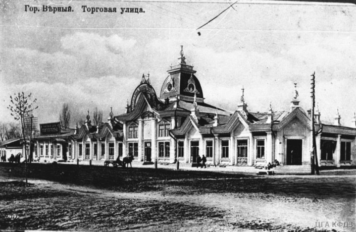 Здание торгового дома Исхака Габдулвалиева (ныне магазин тканей в Алматы).