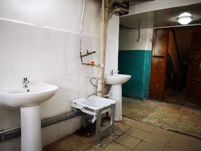 В туалетах грязно, где-то неконтролируемо бежит вода, а в женской части и вовсе повалилась стена.