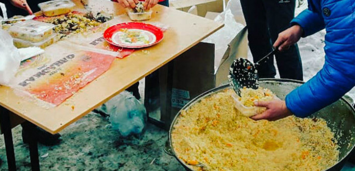 "У наших прихожан есть WhatsApp-чат. Я написал сообщение туда, сообщил что случилась такая беда, и предложил: давайте, что сможем, сделаем, поможем. У нас есть общий титан (водонагреватель - прим. авт.), казаны, попросил привезти на место эту и другую посуду. Дальше люди начали сами проявлять инициативу. Один мужчина зарезал барана, привез на место, другой - хлеб, третий - овощи... К 9-10 утра на месте уже начали готовить сорпу и плов.