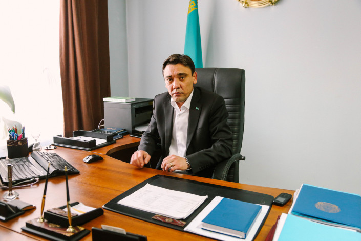 Аким Гульдалинского сельского округа Талгарского района Алматинской области Максат Маханбеткали, кажется, удивлен нашему визиту с улицы, но принимает сразу. У него в кабинете мы также видим грамоту от акима области и узнаем немного статистики про село: