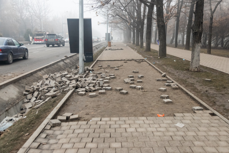 Участники январских событий отдирали плитки с тротуаров и использовали для нападений.