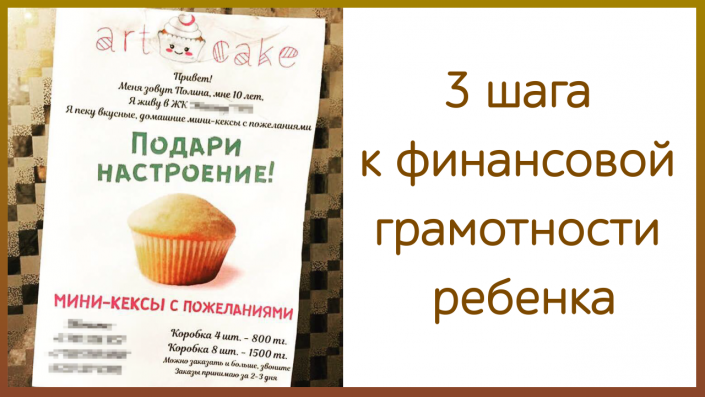 Все, что знаю про финансовую грамотность детей, я опробовала на своей старшей дочери. Однажды Полина участвовала в моем тренинге по финансовой грамотности для детей: я рассказываю, что такое деньги, по каким принципам работают банки и страховые компании, зачем нужен, как составить и реализовать бизнес-план. Итогом обучения был бизнес-проект. Дочка решила, что она будет зарабатывать на выпечке кексов. Дочка сама разработала упаковку для них и повесила рекламу в лифте нашего дома. Много она не заработала, но самое важное, что у нее появился опыт планирования и реализации собственного дела.