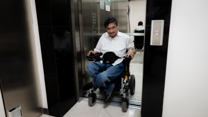 Также Ернару Сарсееву неудобно обращаться в отделения банков, многие из которых расположены в жилых домах. Когда у директоров филиалов спрашивают, почему нет пандуса, то они отвечают, что это "ответственность владельца, управляющего недвижимости - бизнес-центра или жилого комплекса". "Получается, нужно обязать банки организовывать отделения только в зданиях, которые пригодны для этого?" - вопрошает мужчина.