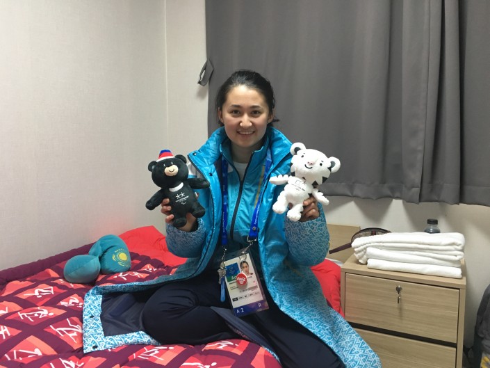 А вот фристайлистка Жанбота Алдабергенова не удержалась и захватила с собой курт. Вот так выглядит стандартная комната в олимпийской деревне.