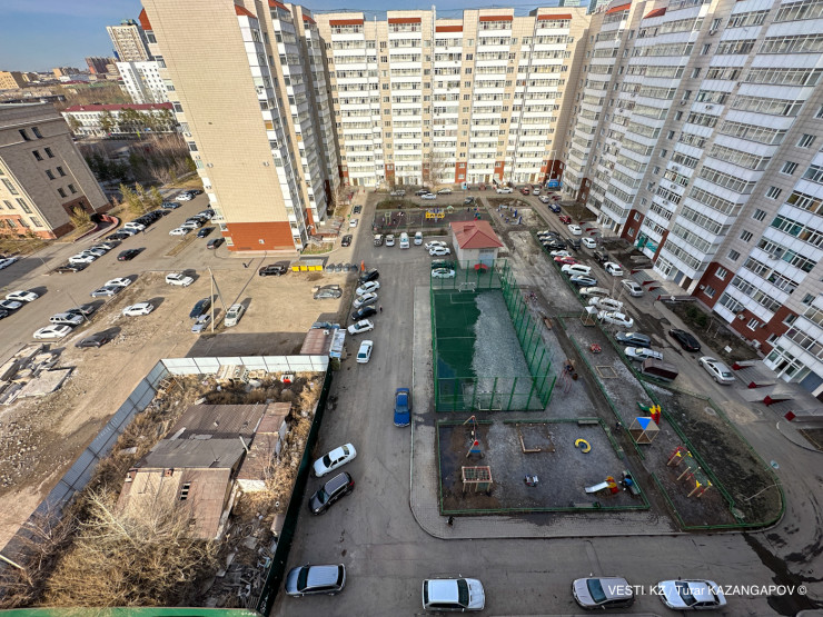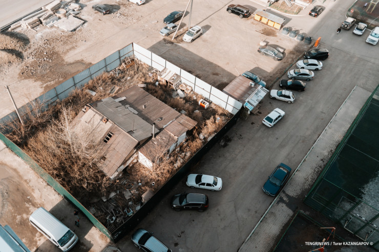 Это двор ЖК "Кенесары". По какой-то причине здесь остался участок с нежилым домом.