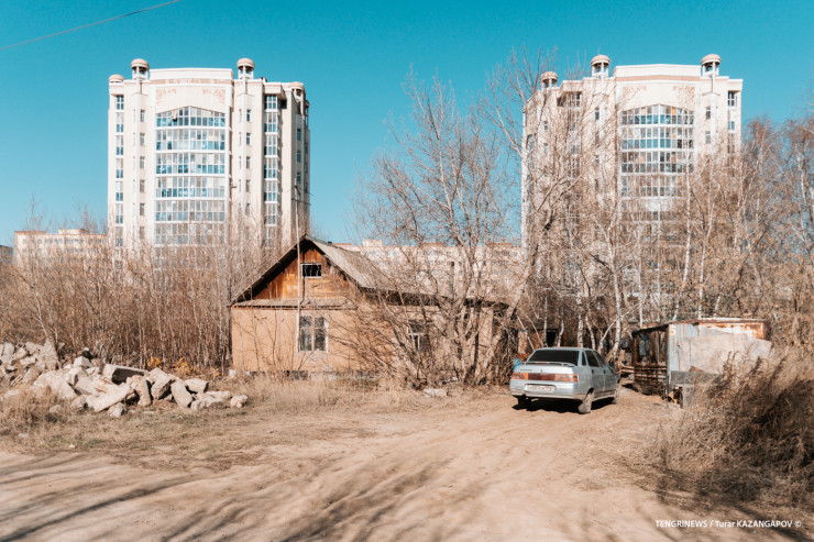 Массовая застройка Астаны уже много лет вытесняет из города частный сектор и дачные массивы. На месте домиков стремительно вырастают огромные жилые комплексы, прокладываются проспекты, строятся детские сады и школы. Однако в столице все еще можно встретить одиночные жилища, которые много лет ждут сноса, но этого уже либо не произойдет, либо пока не нашелся справедливый покупатель земли. В это время окна таких строений уже смотрят на стены многоэтажек. И выглядят эти домики теперь не как старожилы, а скорее как чужаки.