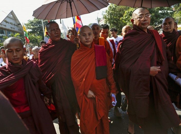 Буддисты штата Ракхайн протестуют против выдачи рохинья гражданства. ©Reuters