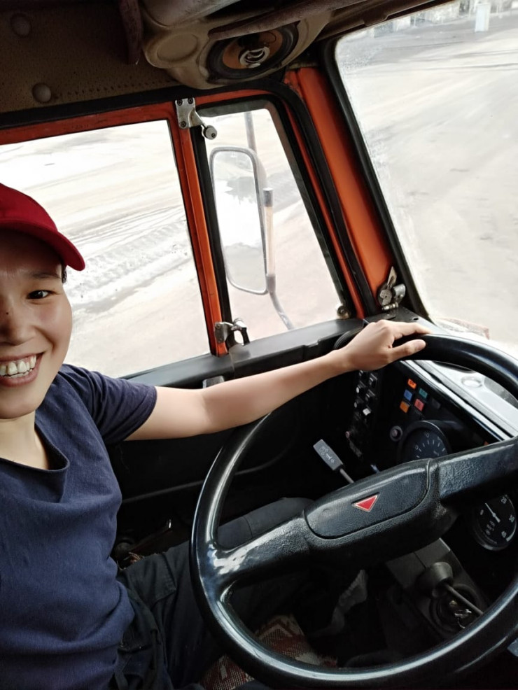 "Когда меня брали на работу, мне сказали, что в первый рейс я поеду в колонне. Поэтому даже не переживала. Однако в итоге мою фуру загрузили первой и сказали никого не ждать, а ехать. Одна, без колонны, с грузом. Без опыта. Ехать сказали через Урал (регион в России). А дороги там - это затяжные спуски и подъемы, горы. Честно признаюсь, я ехала и от страха стучала зубами, волосы были дыбом. Автомобили несутся. Мне тоже приходилось ехать быстро, потому что иначе я бы создала препятствие другим машинам. Но в итоге Урал я благополучно преодолела. А там уже и до пункта назначения доставила груз", - делится впечатлениями Алмагуль.