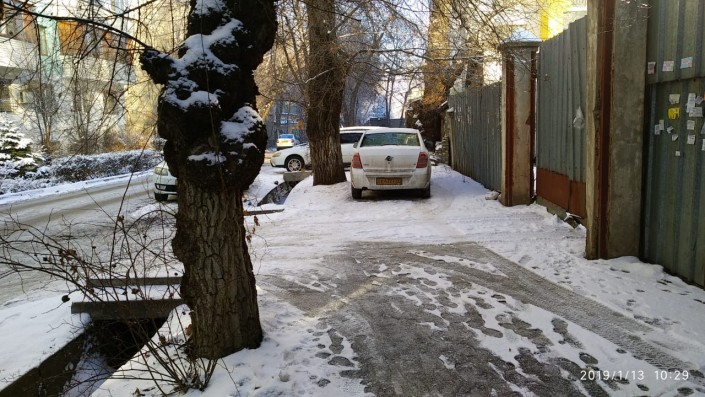 Житель дома № 116 по проспекту Достык 10 января пожаловался на водителя SsangYong. Автор видео заявляет, что автомашину постоянно оставляют у входа перед подъездом № 4.