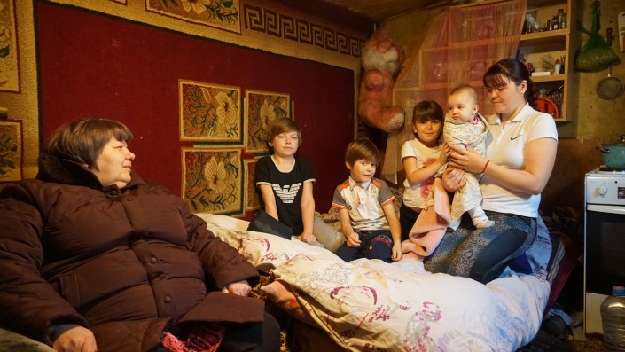 Их дом сгорел в феврале 2014 года. Потом они снимали комнату в саманном строении. Оттуда переехали в сарай, где спали прямо на угле. Условия были невыносимые. В конечном итоге перебрались в старый неотапливаемый вагончик. С тех пор и живут там, скоро будет уже четыре года. Всего их шестеро: бабушка, ее дочь и четверо внуков. Помогли ли им люди? Да. Нуждается ли эта семья сейчас в помощи? Да.