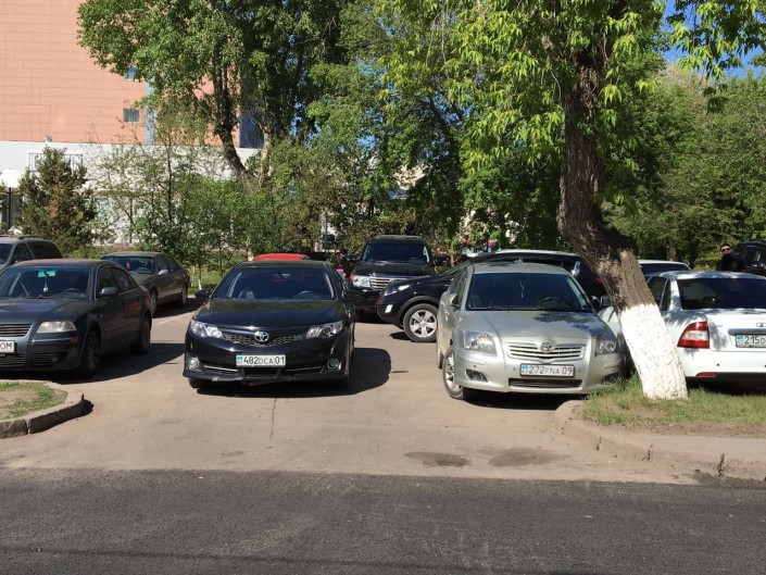 И снова Алматы - парковка на детской площадке во дворе жилого дома по адресу Айманова, 85.
