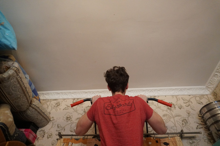 Рост парня - метр девяносто. Благо у ребят есть турник, где можно выплеснуть энергию.