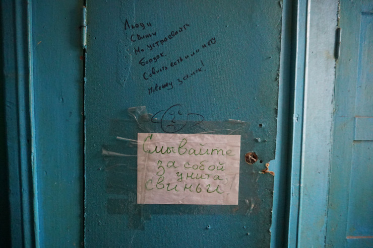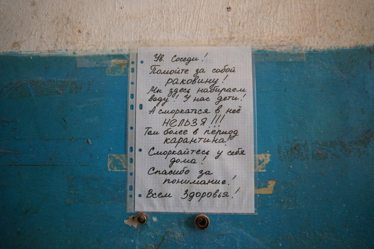 "Например, у меня с обеих сторон комнаты живут две семьи, в одной маленькие дети и во второй. Вот представьте, 25 декабря у нас выключили воду и люди три недели сидели без воды. Нужно понимать, что здесь у нас горячей воды от природы нет, единственное, что есть, - холодная вода, и ее отключили. Так что у нас праздника (имеет в виду Новый год) не было, потому что мы не могли ни кушать сварить, ни посуду помыть, уже не говоря о том, чтобы умыться и помыться. Вот так живем и мучаемся", - говорит соседка Оксаны.