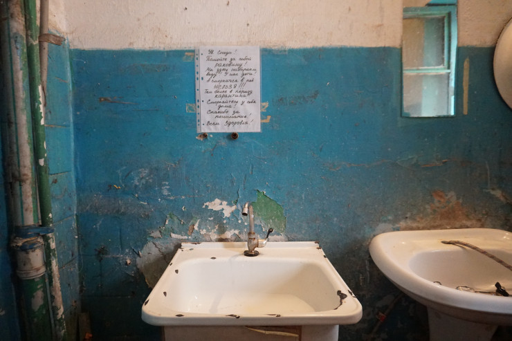 В их общежитии 1959 года постройки накопилось много проблем: электропроводка, которая периодически горит, забитая канализация (в общем туалете два унитаза, но рабочий только один) и самое болезненное для многих - перебои с водоснабжением. У Оксаны и ее соседей в принципе нет горячей воды. В умывальнике, который один на всех, есть доступ лишь к холодной, но и ее иногда не бывает.