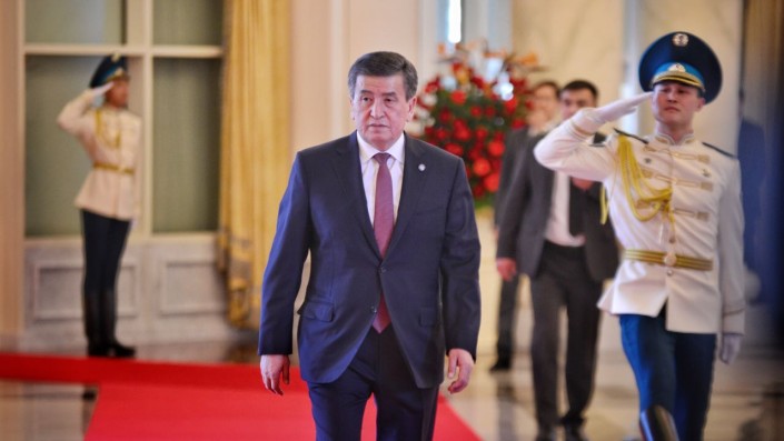 Первым в Акорде рота почетного караула встречала Президента Кыргызской Республики.