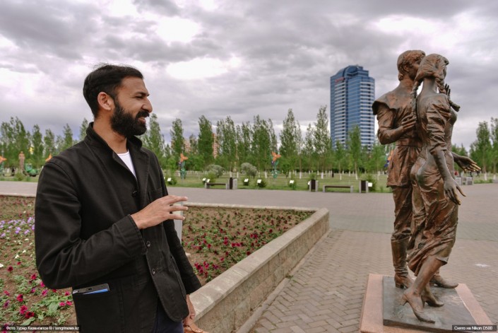 Асиф Хан - британский архитектор, чье имя широко известно за пределами туманного Альбиона. В Казахстане талантливого дизайнера знают как автора британского павильона на EXPO-2017. Именно ему принадлежит идея экспозиции в виде юрты. Асиф Хан не понаслышке знаком с переносным домом кочевых народов. На первом курсе университета британский архитектор собрал юрту со своими сокурсниками и был восхищен простым, но в то же время продуманным строением жилища. Как оказалось, ему по душе и казахские национальные орнаменты. Корреспондент Tengrinews.kz Айгерим Абилмажитова и фотограф Турар Казангапов прогулялись с британским архитектором по главному бульвару Астаны. В беседе с журналистами Асиф Хан рассказал об интересе к домам, "спрятанным за заборами", о высотках и невероятной красоте неба над столицей.