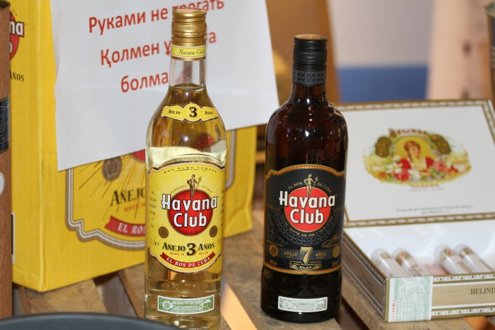 "У нас здесь кубинский ром, сигары...", - говорит на русском Марай Родригес.