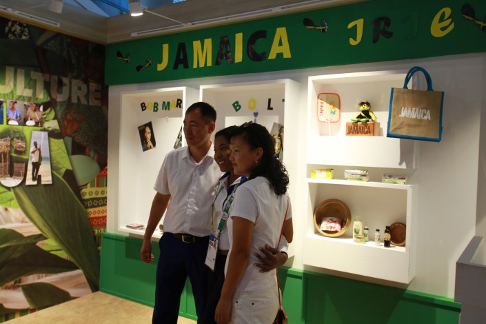 Из карибского бара звучит песня "No woman, no cry" ямайского исполнителя Боба Марли. Его фотография украшает полку национального павильона Ямайки. То есть в этой стране, по всей видимости, считают Марли своеобразным брендом.