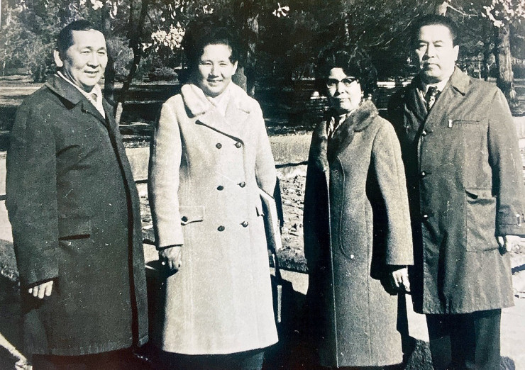Кәкімжан Қазыбаев жұбайы Орынша Қарабалинамен және Рахымжан Қошқарбаев жұбайы Рахила Яхинамен