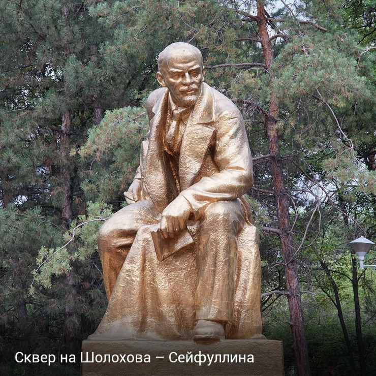 Изображения и скульптуры Владимира Ленина - отдельная тема. В советское время по всему Казахстану в честь российского революционера называли улицы, различные объекты, устанавливали памятники. Но даже спустя 100 лет после Октябрьской революции, несмотря на то что многие скульптуры перенесли, а улицы переименовали, Ильича можно встретить, прогуливаясь по современному Алматы.