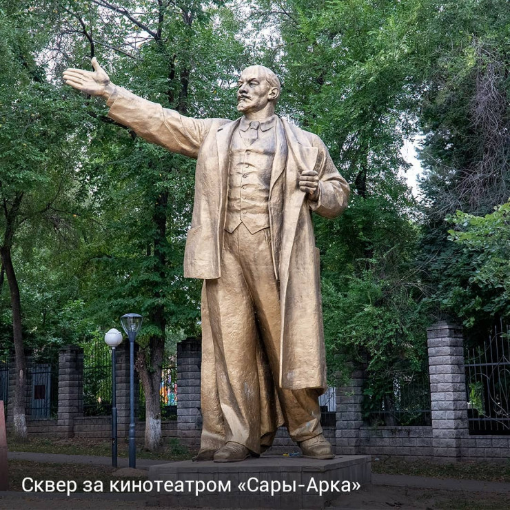 "Мы решили разобраться, сколько же Лениных находится в Алматы. Главный памятник стоит за кинотеатром "Сары-Арка" вместе с другими советскими политическими деятелями. Ранее 12-метровый монумент находился на Старой площади. Интересно, что бронзовый Ильич – работа выдающегося скульптора Евгения Вучетича, автора монументов "Родина-мать зовет" в Волгограде и "Воина-освободителя" в берлинском Трептов-парке", - рассказывает Дмитрий Доценко.