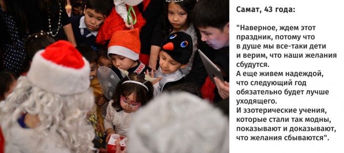 "В каждом из нас живет ребенок. В канун Нового года он просыпается и ждет чуда. Мы в детстве запоминаем, что есть Дед Мороз, и хоть мы в него не верим, он живет в нашем сознании, в иллюзорном мире. И становясь взрослыми, мы сами становимся Дедами Морозами и стараемся дарить праздник детям, родным и близким, самим делать это чудо", - рассказал президент Ассоциации психологов РК Владимир Стеблянко. По его словам, этот праздник у многих ассоциируется со множеством подарков. "Старшие готовят подарки для младших, дети их получают и радуются. Новый год - это ожидание новогодних подарков. Ведь приятно в этой суете оформлять подарки, дом к этому празднику. Наряжать елку, готовить костюмы. Поэтому мы и тратимся на подарки, чтобы сделать приятное своим родным", - считает Стеблянко.