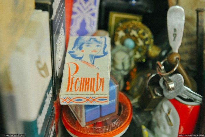 А вот есть ли покупательницы советских накладных ресниц - неизвестно. Но и этот женский товар, как и духи, является экспонатом магазина.