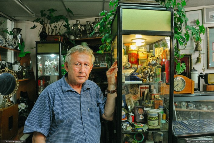 В старом центре Астаны за обычной на первый взгляд вывеской находится настоящий мини-музей. Быть может, кто-то из жителей или гостей города замечал немолодых людей с авоськами, но горящими любопытством глазами, заходящих сюда, в антикварный магазин. Владельцами лавки является семья Семеновых, перебравшаяся в столицу в начале 2000-х годов. Свой магазин они открыли в 2006 году. Как объяснил нам Семенов-старший, Валерий Алексеевич, это был единственный специализированный магазин в Астане.