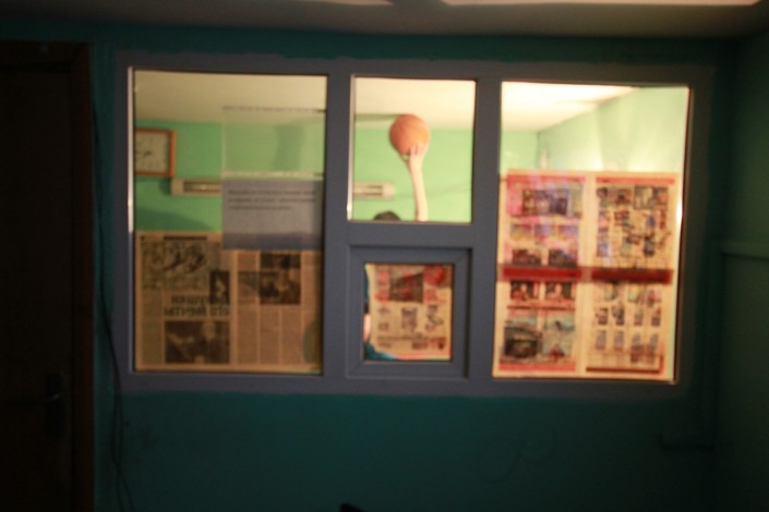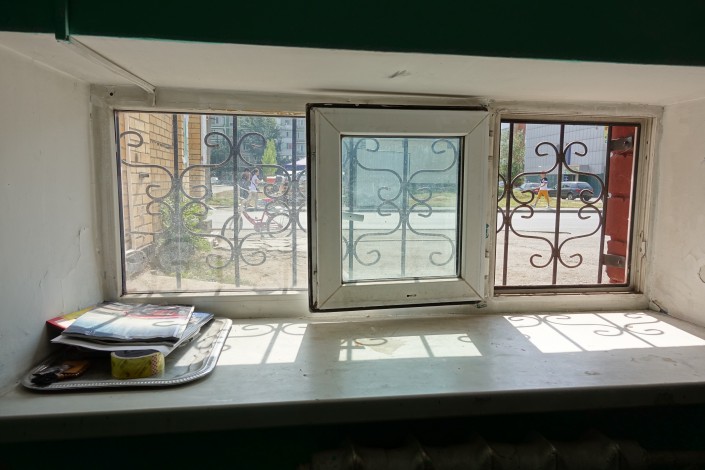 С весны здесь, кажется, мало что изменилось. Помещение, где работает телевизор, - это еще не комната Исатая, а место ожидания для клиентов автомойки. Само жилье Таумашева находится за окном, обклеенным газетами.