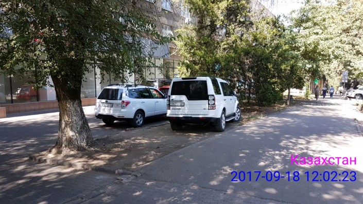 Парковка на тротуаре на пересечении улиц Айтеке би и Чокина
