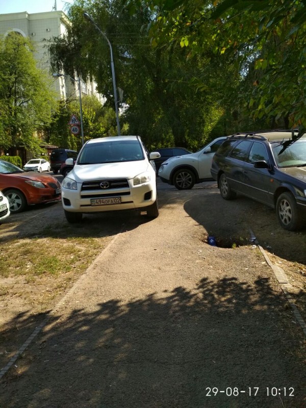 К другим нарушениям. Парковку в неустановленном месте заснял очевидец на улице Сыганак.