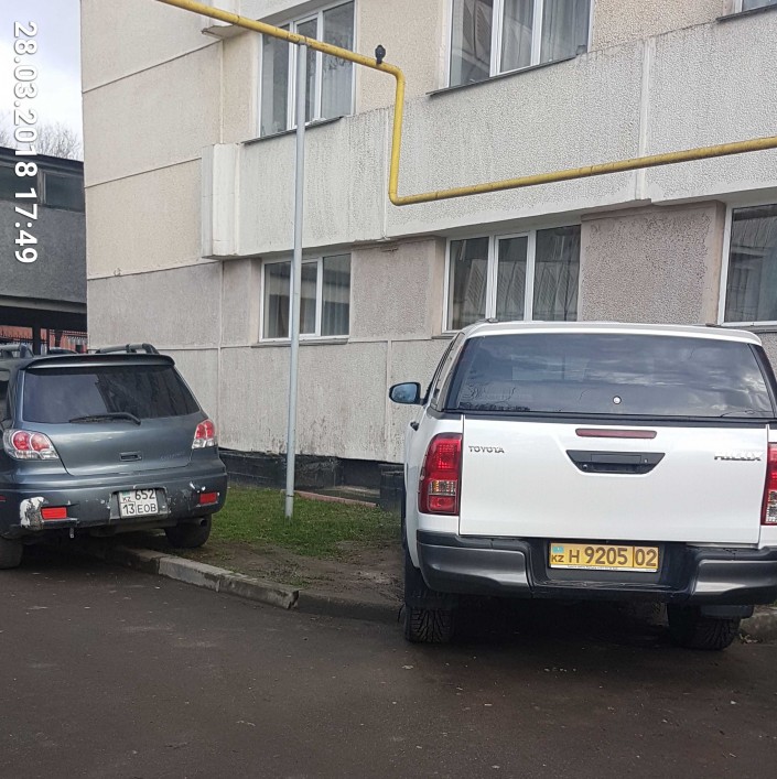 На улице Амангельды Иманова, 44, тоже снят случай неправильной парковки. "Парковка на газоне. В это время были пустые места рядом", - отметил очевидец.