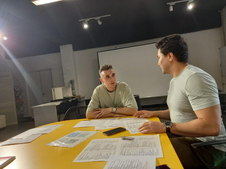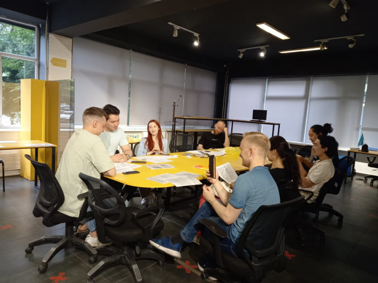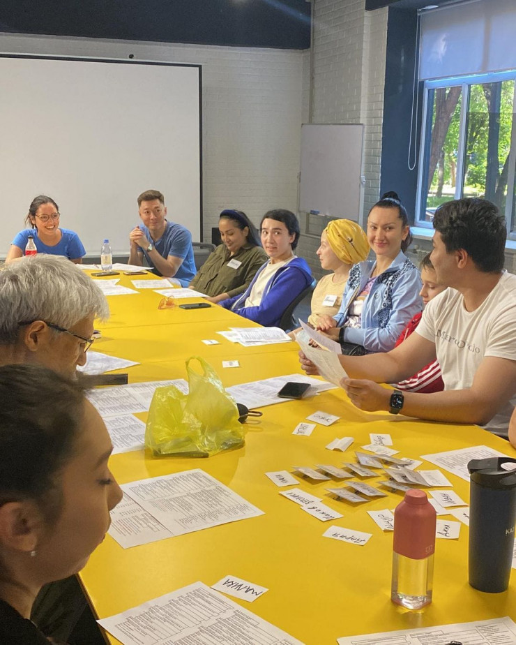 Время летит незаметно. Через полчаса мы уже становимся будто маленькой семьей, каждый поддерживает другого в желании высказаться на казахском языке. Условный водитель автобуса в брошюре оказывается немного с характером, приходится собеседнику импровизировать. Все как в жизни.