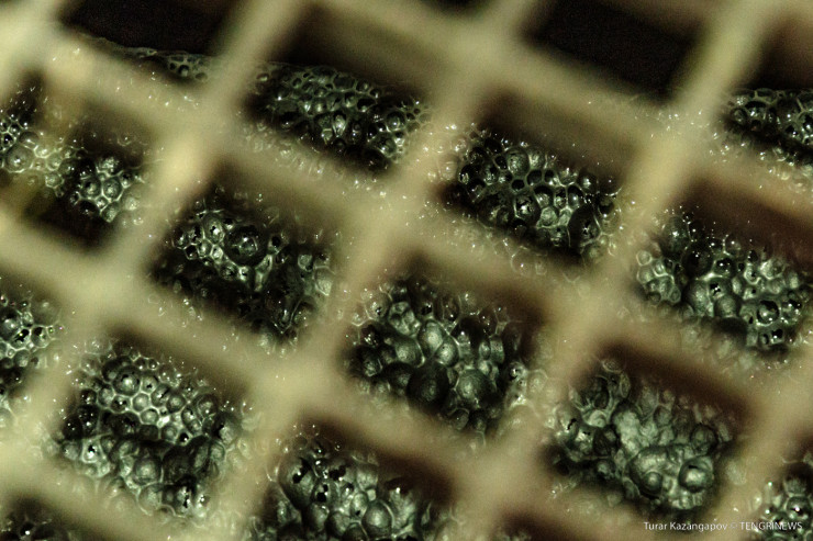Нургали рассказал, что в отделении флотации в смесь из воды и руды подают воздух. В воде содержатся специальные вещества, которые заставляют частички меди прикрепляться к пузырькам воздуха и вместе с ними всплывать на поверхность.