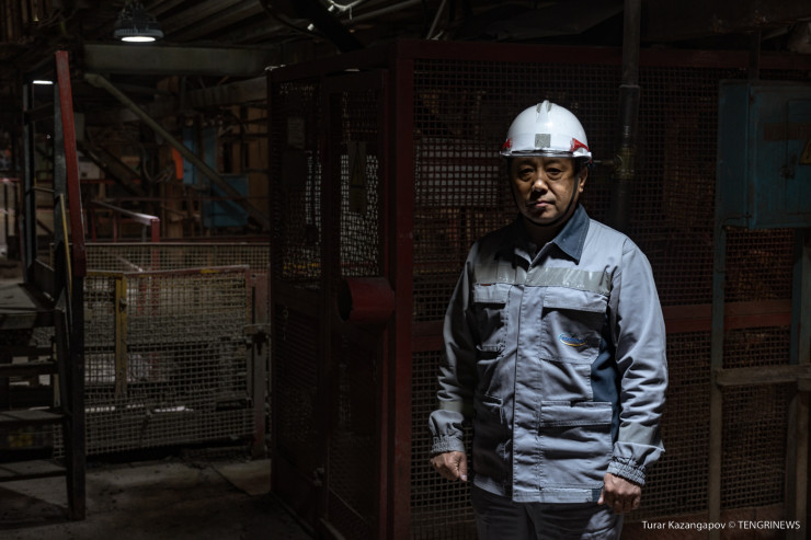 В главкорпусе фабрики нас встретил начальник цеха Нургали Есилбаев. Он работает здесь уже 30 лет.