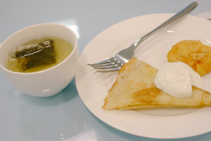 Блинчик со сметаной, сырник с курагой и чашка зеленого чая обойдутся в 242 тенге.