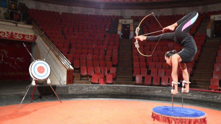 Артистка Кыргызского государственного цирка, а также лучница федерации лучников "Салбурун" Аида Акматова дебютировала с номером "Ножная стрельба из лука" в 1998 году, когда ей было всего 12 лет. Девушка вошла в книги рекордов Кыргызстана и Европы.