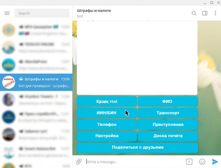 Как работает ShtrafKZBot? Через название находим бот в Telegram. Выбираем в меню нужную услугу. Если необходимо узнать о штрафах, налогах, есть ли запрет на выезд, то вбиваем ИИН.