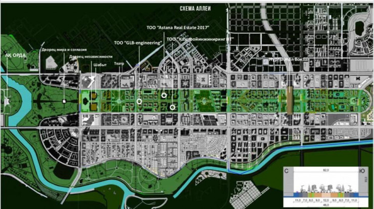 Часть аллеи "Мынжылдык" построена уже сейчас, она будет проходить через новый Музыкально-драматический театр (он на фото).