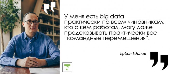 Вообще, я люблю людей. У меня есть big data практически по всем чиновникам, кто с кем работал, могу даже предсказывать практически все "командные перемещения".