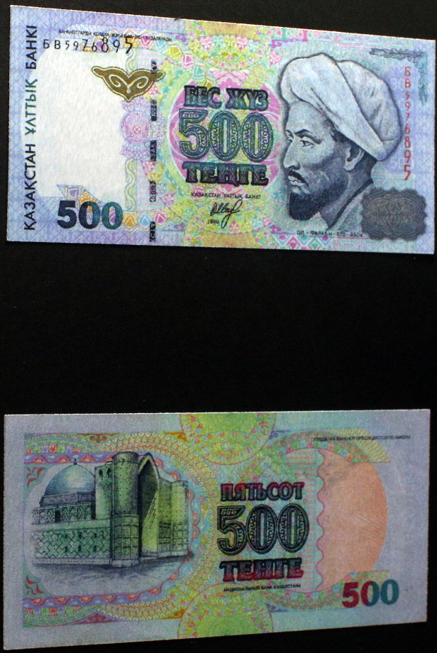 Со временем возникала потребность в более высоких номиналах тенге, в том числе из-за инфляции. Первые банкноты высоких номиналов сформировали серию "Аль-Фараби", основным изображением на которых был портрет великого ученого и просветителя Востока. Банкноты этой серии выпускались в 1994 году номиналом 200, 500 и 1000 тенге, в 1996 году появилась банкнота в 2000 тенге, в 2000 году - в 5000 тенге и в 2003 году - в 10 000 тенге. Периодически в банкноты этой серии вносились изменения для того, чтобы усилить и усовершенствовать защитные свойства, не меняя основное изображение.