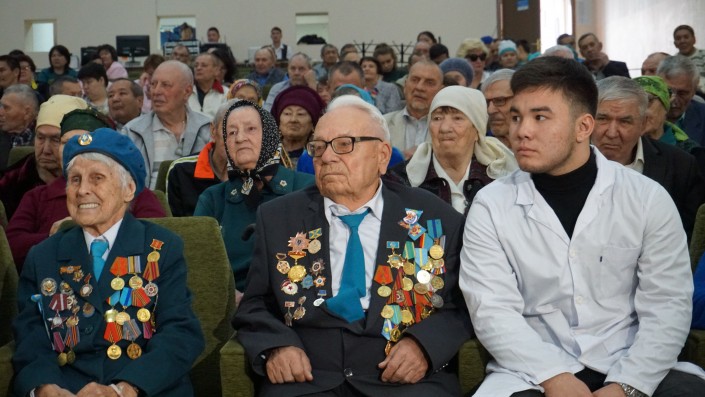 Вместе с другими пенсионерами он пришел посмотреть и послушать концерт, который им подготовил творческий коллектив Национальной гвардии.