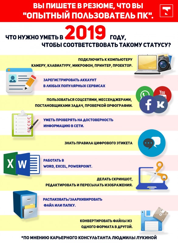 В 2019 году строчка в резюме "опытный пользователь ПК" звучит примерно как "умею пользоваться вилкой". Требования по компьютерной грамотности растут к представителям всех профессий: у учителей появились электронные школьные дневники, у врачей в клиниках автоматом подразумевается, что история болезни будет заполнена в электронном виде.